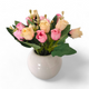 Eleva la decoración de tus espacios con este increíble arreglo floral de rosas mini, con flores de tela y un elegante florero de cerámica en color blanco. Una opción perfecta para dar un toque de belleza a cualquier lugar. Medidas: Altura arreglo 17 cm Altura base 7 cm Ancho arreglo...